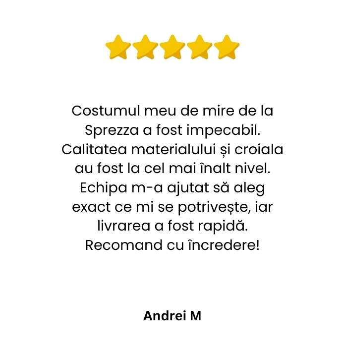 Disponibil în showroom-ul nostru SPREZZA, acest serviciu excepțional îți permite să personalizezi croiala, țesăturile și finisajele pentru a crea look-uri unice care te reprezintă cu adevărat.